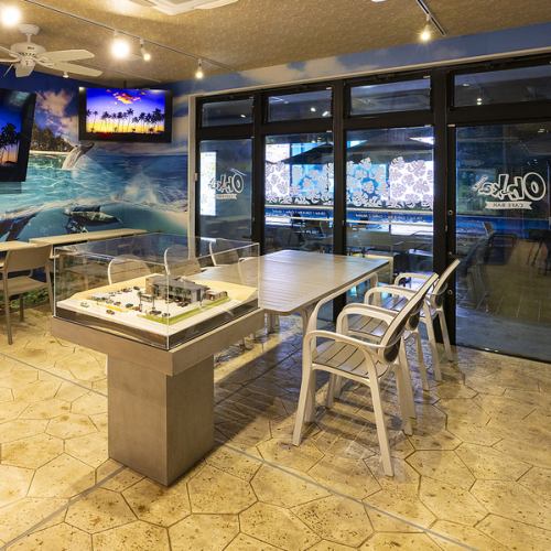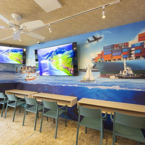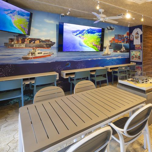 눈앞에 펼쳐지는 수영장의 수경과 장난기 넘치는 디자인.낮에는 태양의 빛에 빛나는 수면을 바라보면서 리조트 기분으로 카페 타임.밤에는 라이트 업 된 수경이 환상적으로 빛나는 엔터테인먼트 공간으로 바뀝니다 ◎ 벽 · 크로스 · 조명까지 고집이 가득하고 특별한 분위기를 연출하고 있습니다.